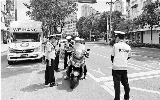 近日,泰顺县公安局交警大队四中队积极开展交通安全“一盔一带”排查。执勤民警在辖区各重点路段设卡,重点查处未戴安全头盔、违停等违法行为,及时消除安全隐患。 通讯员 赵建东