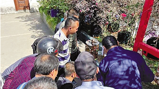 | 4月16日,贵州省黔东南州某县城广场一角,几名群众正在围观斗鸟。新华社 蒋成 摄 |