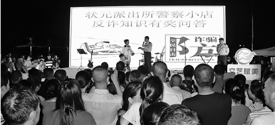 | 近日,借着当地杨梅节开幕,温州市公安局龙湾区分局状元派出所社区民警吴正中的“警察小店”也登台“营业”了。吴正中以有奖问答的形式宣讲反诈知识,现场群众热情高涨,纷纷上台互动答题,反诈知识入脑入心。 通讯员 郑斌方 摄 |