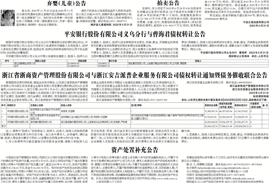 浙江省浙商资产管理股份有限公司与浙江安吉派普企业服务有限公司债权转让通知暨债务催收联合公告