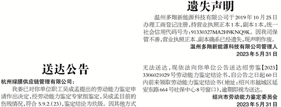 温州多翔新能源科技有限公司于2019年10月25日办理工商登记注册,持营业执照正本1本,副本1本,统一社会信用代码号为:91330327MA2H9KNQ9K。因我司保管不善,营业执照正本、副本确系已经遗失,现声明作废。