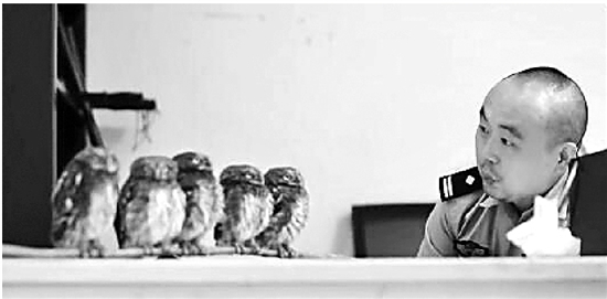 近日,四川宜宾,一居民在浴室发现5只猫头鹰幼崽。民警将它们带回派出所,并联系野生动物保护站。小家伙们在派出所十分乖巧,还会排排站,陪民警熬夜值班。