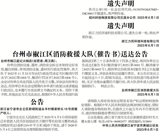 浙江力民环境科技有限公司,遗失公章一枚,特此声明作废。