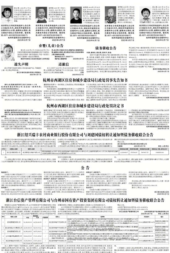 浙江台信资产管理有限公司与台州市国有资产投资集团有限公司债权转让通知暨债务催收联合公告