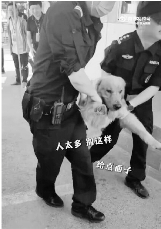 6月7日,安徽舒城,一只小“金毛”随人群冲入考场,被考点的执勤民警“无情请出了大门”。
