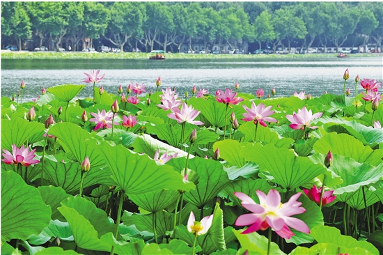近日,杭州西湖荷花陆续绽放,渐入佳境。目前开花最盛的是平湖秋月荷花种植区,竞相开放的荷花美不胜收。今年的荷花之约可以安排起来了。 里尔 摄