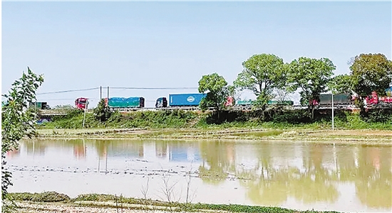 | 大量货车拥堵在一处国道上。 余春生 摄 |
