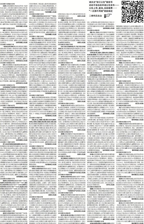 杨义平:本院受理原告杨丽与被告杨义平民间借贷纠纷一案,现依法向杨义平方公告送达起诉状副本、证据副本、应诉通知书、举证通知书、防范虚假诉讼告知书、自动履行告知书、民商事案件诉讼须知、诉讼风险告知书、开庭传票、小额转普通裁定书、一审普通程序独任审理告知书等。自发出公告之日起,经过30日即视为送达。提出答辩状和举证的期限为公告期满后的15日内。本案定于2023年8月7日14时30分在宁波市鄞州区人民法院第二十一审判庭公开开庭审理,逾期将依法缺席裁判。 宁波市鄞州区人民法院
