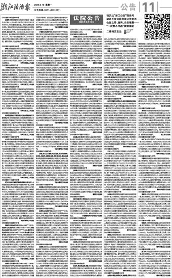 章建伟(公民身份号码:3302041965****2012)、张建梓(公民身份号码:3308211976****1611)、潘会凤(公民身份号码:3325271977****2429)、黄孝苹(公民身份号码:3302821985****012X)、陈金菊(公民身份号码:3308251970****1223):本院受理的原告中国大地财产保险股份有限公司宁波分公司诉被告章建伟、张建梓、潘会凤、黄孝苹、傅培利、陈金菊保证保险合同纠纷一案,已审理终结。因你们下落不明,现依照《中华人民共和国民事诉讼法》第九十五条的规定,向你们公告送达(2023)浙0203民初2131号民事判决书。限你们自本公告发出之日起30日内来本院民三庭领取民事判决书,逾期则视为送达。如不服本判决,可在判决书送达之日起15日内,向本院递交上诉状,并按对方当事人的人数提出副本,上诉于浙江省宁波市中级人民法院。逾期本判决即发生法律效力。 宁波市海曙区人民法院
