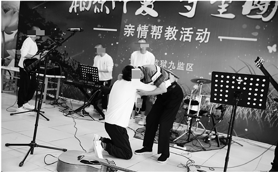 “蓝色的涤卡上衣,痛往心里钻。坐在池塘边,狠狠给了自己两拳……”帮教活动现场,罪犯也为各个家属的到来精心准备了一系列自编自导自演的歌曲、舞蹈、快板及小品等节目,其中一个就是郭亮的乐队演出。他唱着《父亲写的散文诗》,老郭在舞台下默默流泪,演出到尾声时民警鼓励老郭走上台,唱到那句“我的父亲已经老得像一个影子”时,郭亮泣不成声,台下的罪犯和家属们一边流泪一边鼓掌……这让老郭想起6年前的那几个拳头,如今,拳头换成了深深的拥抱。
