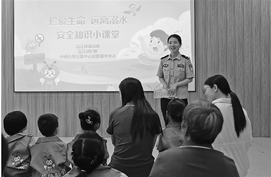 近日,临海市沿江派出所民警面向幼儿园小朋友及家长,宣传暑期防溺水知识,提高大家的安全意识;同时普及流动人口积分制情况,确保流动人口子女能顺利上学。 通讯员 李雨潞