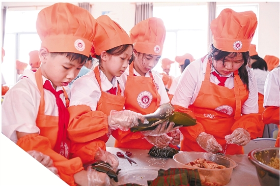 | 学生们在包粽子 |