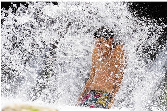 6月27日,在美国得克萨斯州奥斯汀,一名男孩在水中纳凉。