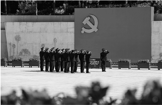 “七一”来临之际,嘉兴市公安局南湖区分局七一派出所作为离红船最近的派出所,民警到南湖革命纪念馆宣誓墙前重温入党誓词,表示要牢记初心使命,坚决扛起“红船护旗手”为党守根护脉的责任和担当。 通讯员 周晨磊