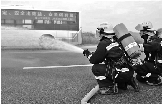 近日,宁波象山交通开发建设集团有限公司组织开展公交车、出租车安全应急救护技能演练,通过公交车辆三检流程演示、心肺复苏及AED使用演示、消防水带接力连接演示、防滑链安装演示、灭火演示等,提升参演人员应急能力。活动还举行了宁波象新公交志愿服务队授旗仪式。 通讯员 史方宏
