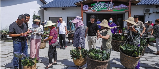 | 6月28日,杭州市临平区塘栖镇丁河村共富工坊的工作人员在收购周边村民采摘下来的枇杷叶,用于生产特色的枇杷叶茶。前期丁河村邀请相关专家进行枇杷叶茶的研发,并于今年4月正式投产,共富工坊目前每月收购来自周边枇杷果农的数千斤枇杷叶用于制作枇杷叶茶。 丁河村是典型的江南水乡,也是著名的枇杷之乡。近年来,丁河村以党建为引领,积极打造乡村共富工坊(包含手作工坊、农业果园、龙虾垂钓、鸬鹚捕鱼表演、露营基地等多个项目),促进特色农产品的开发和销售,增加当地百姓的收入。 新华社 徐昱 摄 |