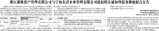 浙江浙栋资产管理有限公司与宁波东君企业管理有限公司债权转让通知暨债务催收联合公告