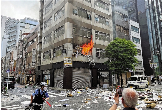 这是7月3日在日本东京都港区新桥车站附近拍摄的爆炸现场(手机拍摄)。