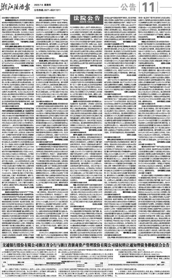蔡建荣:本院受理的原告俞银珠与被告蔡建荣、金小凤追偿权纠纷一案,原告请求:一、判令被告(一)立即支付追偿款人民币20万元;二、判令被告(二)对上诉款项承担保证责任;三、本案讼费由被告承担。因用法律规定的其他方式无法送达,依照《中华人民共和国民事诉讼法》第九十五条之规定,依法向你公告送达起诉状副本、证据副本、应诉通知书、诉讼风险提示书、权利义务告知书、举证通知书、开庭传票、廉政监督卡、互联网公布裁判文书的规定、诉讼须知、转普民事裁定书等诉讼文书。自本公告刊登之日起,经过30日即视为送达。提出答辩状期限和举证期限分别为公告期满后15日内和30日内。本案于:2023年9月11日14时00分在双林法庭公开开庭审理,届时未到庭,本院将依法缺席审理判决。 湖州市南浔区人民法院