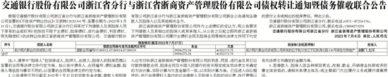交通银行股份有限公司浙江省分行与浙江省浙商资产管理股份有限公司债权转让通知暨债务催收联合公告