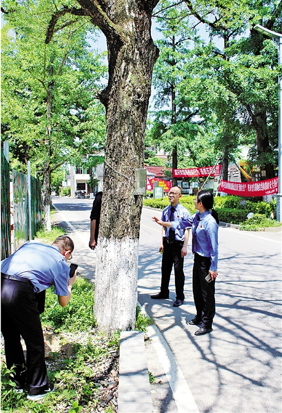 梳理法律政策、向专家咨询、现场勘查、实地走访……工作人员经调查,发现当地非通透性硬化古银杏有323株,被堆放杂物、悬挂网线古银杏523株,长势衰弱濒危古银杏则达183株。