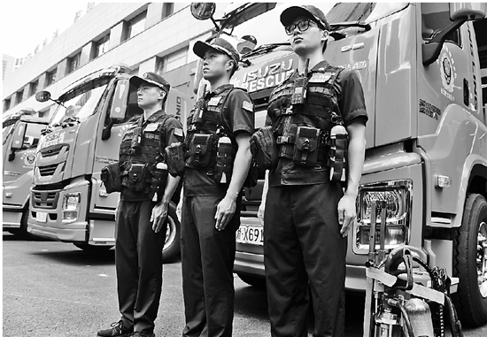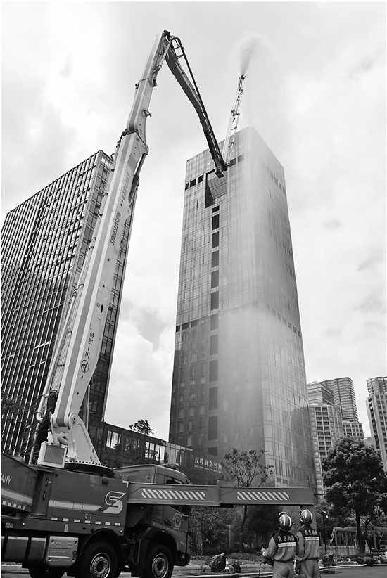 记者在活动现场了解到,此次展示的除了便携式八件套消防个人装备外,其他装备可以说从天上覆盖到了地下,其中65米大跨度举高喷射消防车是杭州市作业高度最高的,水炮的垂直喷水高度近100米,水平距离超过85米,能有效处置辖区内100米左右高度的高层建筑火灾。而消防灭火排烟机器人则是专门应对地下车库等大跨度空间区域突发情况的,最大排烟风力超过7级,一辆1.2吨的小车在空档情况下,可以被轻松吹跑。