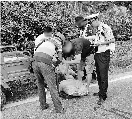 事发当天,临安交警於潜中队在太阳镇横乐线木杓溪附近开展路面集中整治。当检查到一辆装满西瓜的轻便三轮摩托车时,民警发现该车驾驶人身上散发着酒味。