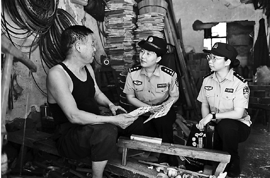 近日,平湖市公安局曹桥派出所民警冒着高温,敲开居民家门,为群众提供便民服务,宣传户籍跨省通办等政策。