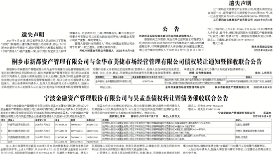 根据宁波金融资产管理股份有限公司与吴孟杰签署的《债权转让协议》,宁波金融资产管理股份有限公司已将其对债权转让清单中所列债务人及其担保人享有的主债权及担保合同项下的全部权利依法转让给吴孟杰。宁波金融资产管理股份有限公司与吴孟杰联合公告通知各债务人及担保人以及其他相关各方。