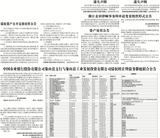 中国农业银行股份有限公司象山县支行与象山县工业发展投资有限公司债权转让暨债务催收联合公告