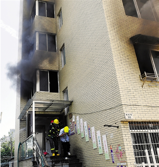 首先进行湿毛巾模拟逃生实验。考虑到此次实验的火场是一楼过道,本报记者选择了二楼距离疏散楼梯约3米的一个房间,以便自己能顺利完成逃生任务。待所有记者进入各自楼层准备就绪,指挥员安排消防员点燃了一楼过道上的电动车。