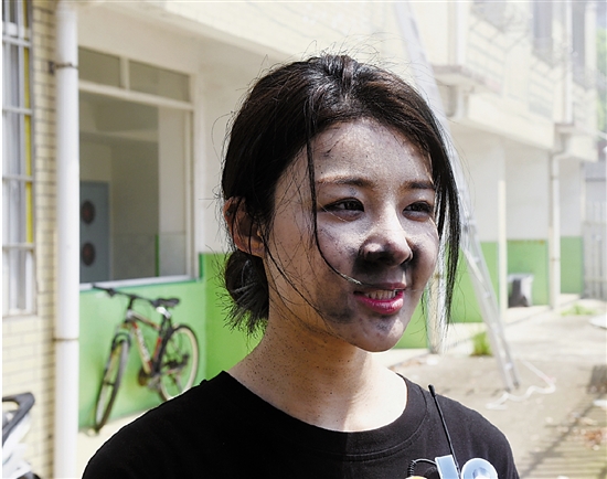 | 参与模拟逃生记者的口鼻被熏黑 |