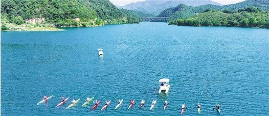 放舟湖面、挥桨如飞。8月16日,国家皮划艇队在淳安县千岛湖赛艇训练基地水域进行项目集中秋训,成为千岛湖一道独特的风景线。近年来,千岛湖凭借优美的自然生态和良好的训练环境,吸引了全国各省市赛艇、皮划艇队来此训练。