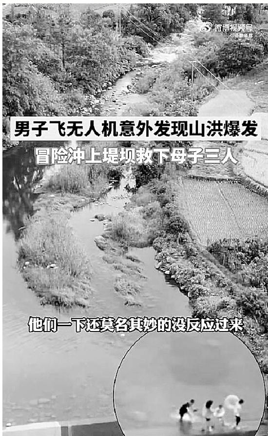 男子飞无人机发现洪水来袭
