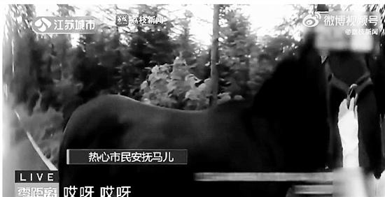 近日,江苏南京市民王女士报警,称马路上出现了一匹大马。民警到场后发现,这匹马全身枣红色,没有缰绳。头一次遇到这种情况,民警只能现学口令驯马。一位有经验的热心市民路过,帮助民警给马拴上了绳子,终于将它先牵到了附近的树林里。此时,另一组走访民警也找到了马的主人,领回了这匹偷跑的马。
