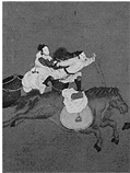 《马术图》中描绘了古人高超的马上杂技技巧,其造型丰富、刻画细腻,人物姿态生动、色彩艳丽,是一件难得的马术绘画艺术作品。