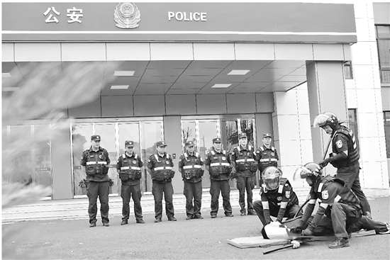 近日,平湖市公安局曹桥派出所组织开展警务技能实战训练,强化全体辅警警务战术意识,提高突发事件应对能力。