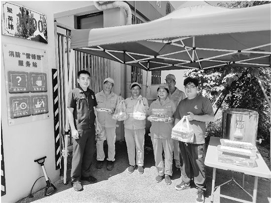 近日,台州湾新区消防救援大队工作人员为坚守在一线岗位的环卫工人送上亲手制作的“爱心”月饼和祝福。