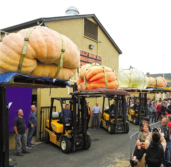 当日,在美国加利福尼亚州的半月湾举行了一场“世界最重南瓜比赛”,获得冠军的南瓜重达2749磅(约合1247公斤)。