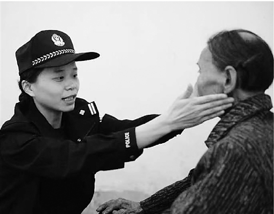 近日,平湖市公安局曹桥派出所民警在走访过程中,了解到曹桥街道92岁的高阿婆身份证找不到了,考虑其行动不便,户籍民警提供了上门办理服务。图为民警为阿婆拍身份证照片。
