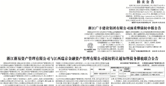 浙江浙易资产管理有限公司与江西瑞京金融资产管理有限公司债权转让通知暨债务催收联合公告