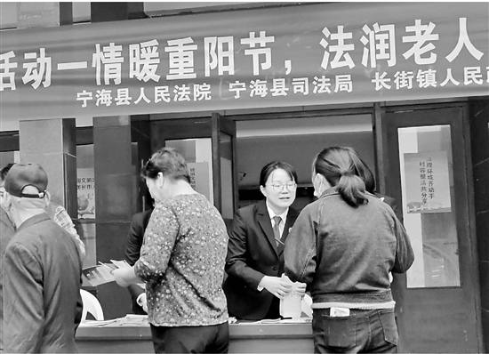 重阳节来临之际,宁海县人民法院长街法庭走进基层,开展以“情暖重阳节,法润老人心”为主题的法治宣传活动。干警们用通俗易懂的语言讲述相关法律知识,并发放诉讼指南和老年人权益保障法等法律法规小册子,引导村民通过法律途径解决纠纷。此外,干警还播放视频,介绍针对老年人的八种诈骗套路,提醒老年人提高防范意识。 通讯员 彭羚