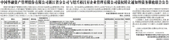 中国华融资产管理股份有限公司浙江省分公司与绍兴裕昌昇企业管理有限公司债权转让通知暨债务催收联合公告