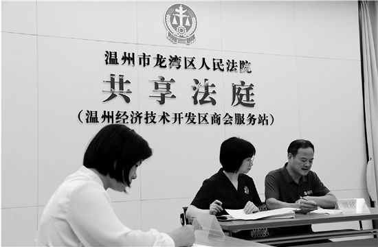 经开区共有工业企业6000多家。为了给企业提供优质的法律服务和坚实的法治保障,龙湾法院双管齐下:一方面,开通快立快审快执的涉企纠纷绿色通道与立案窗口,专人专办,加快流转速度;另一方面,联合区法学会把法庭工作延伸到企业家之家,设立经开区商会“共享法庭”,将人民调解、行业调解、司法调解优势互补、有机衔接,整合各类调解资源和力量,成为深化诉源治理的“重要前哨”、企业参与诉讼的“便捷驿站”,打造诚信有序的营商环境。