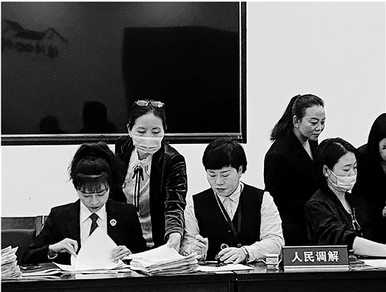 爱和书记和“爱和共享助调员”一起快速投入到调解工作中,通常一般的纠纷会在1小时内调处成功,当事人足不出园区就能享受到方便快捷的调解服务。
