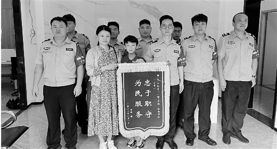 | 群众给下沙街道“小脑+手脚”联勤中队送来锦旗 |