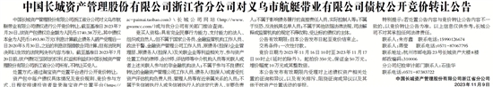 中国长城资产管理股份有限公司浙江省分公司对义乌市航艇带业有限公司债权公开竞价转让公告