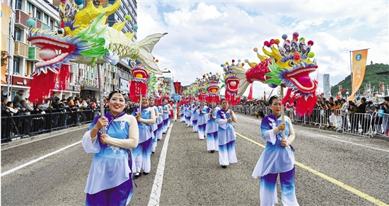 11月11日,第八届沈家门渔港民间民俗大会开幕式在舟山市普陀区沈家门渔港举行。舟山锣鼓、渔歌号子等民间艺术方阵和该区各乡镇展演节目巡游展示,让在场市民和游客感受到渔港独特的气息与风情。