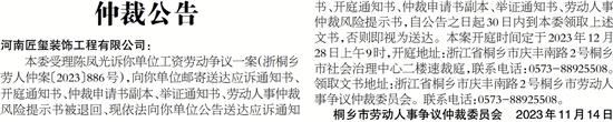 桐乡市劳动人事争议仲裁委员会 2023年11月14日