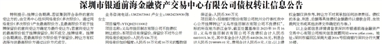 以上全部信息详情请登录深圳市银通前海金融资产交易中心有限公司相关信息披露网站www.ytfae.com。地址:深圳市福田区深南大道2016号招商银行深圳分行大厦33楼。